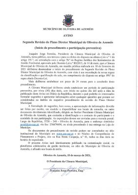 A Junta de Freguesia informa que deu inicio a segunda revisão ao Plano Diretor Municipal, com vista à recondução das novas regras de classificação e qualificação do solo. Os interessados deverão apresentar as suas sugestões à Câmara Municipal.